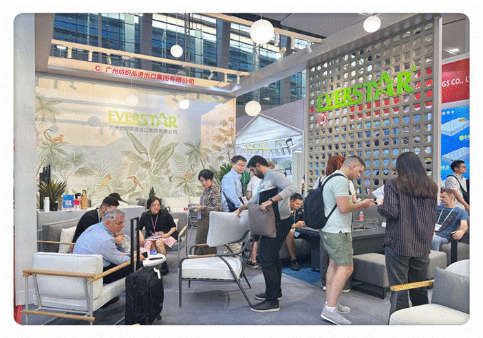 廣交會(huì)二期開(kāi)展第一天,紡出公司的戶外家具攜全新產(chǎn)品亮相,吸引眾多采購(gòu)商。戶外家具向來(lái)自帶高規(guī)格光環(huán),不僅要具備耐磨、防水、防曬、抗腐蝕的自身?xiàng)l件,還要滿足美觀、時(shí)尚、個(gè)性化的顏值要求,同時(shí)還要兼?zhèn)淙犴g、親膚、透氣的舒適功能。在本屆廣交會(huì),紡出公司推出的“新”,成為展館內(nèi)的“顯眼包”,展位上一直都是“人從眾”,為新一屆參展工作序新篇、開(kāi)好頭。