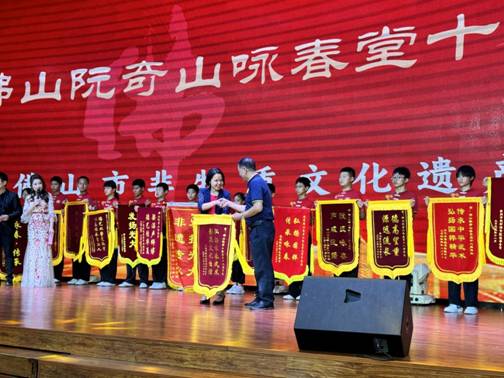慶典活動上,劉妍代表利工民公司向佛山阮奇山詠春拳館贈送題為“弘揚(yáng)武術(shù)文化,彰顯文化自信”的錦旗。