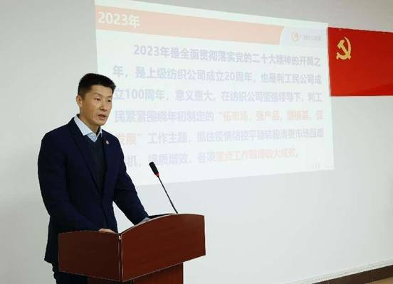 1月22日,利工民召開2024年工作會議。紡織公司黨委書記、董事長簡瑋儀,常務(wù)副總經(jīng)理葛偉志蒞臨指導(dǎo)。公司領(lǐng)導(dǎo)班子、主管以上干部、職工代表參加。會議由黨支部書記劉妍主持。