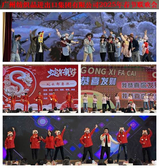 會議在歡樂的氛圍中進行最后一項議程——紡出公司春節(jié)文藝表演。節(jié)目以紡出公司領導班子帶領的《“我”的成長史》拉開序幕;《蛇么都要漲》以“三句半”的形式引起一片歡聲笑語;創(chuàng)意舞蹈秀《多財多億賀新春》把現場氣氛推向高潮;《漫步蛇年富貴平安》用歌聲表達了對新年的期許與美好祝福。